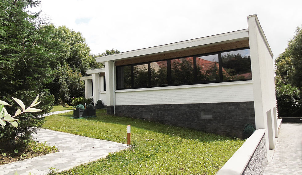 Fruit d’un architecte Calaisien, elle s'est largement inspirée du style “Le Corbusier” par ses grands espaces épurés et sa toiture terrasse donnant sur la nature .